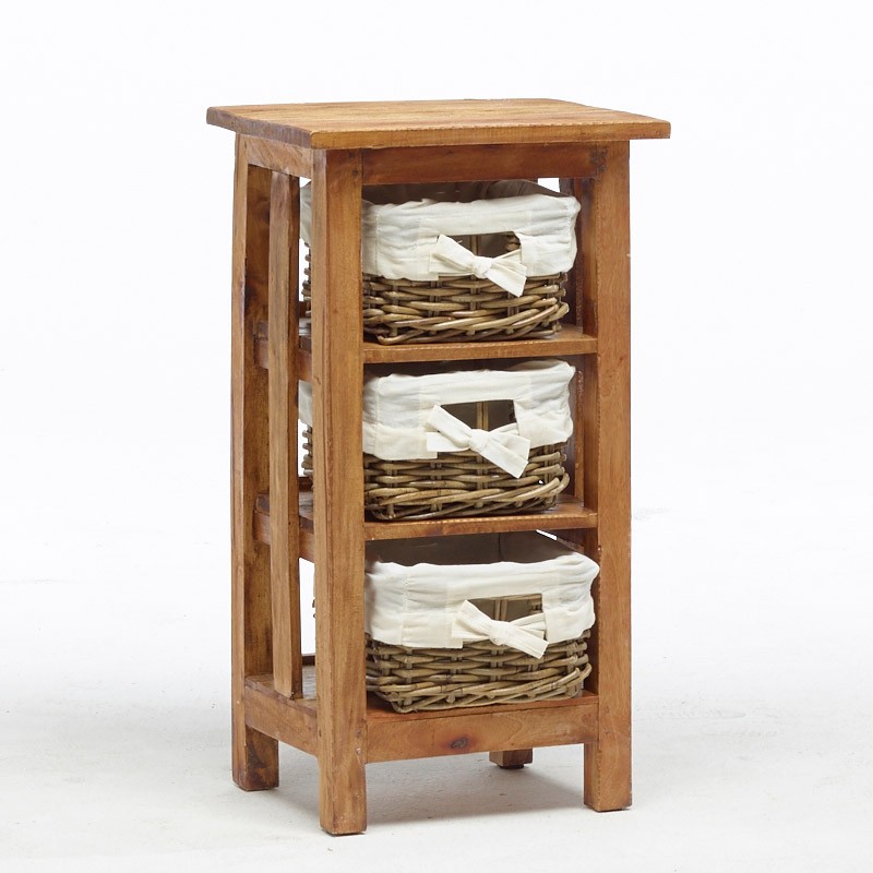 Cassettiera a cestini in stile country realizzata in legno vecchio massello al naturale con le sue venature e i segni del tempo e dell’usura.