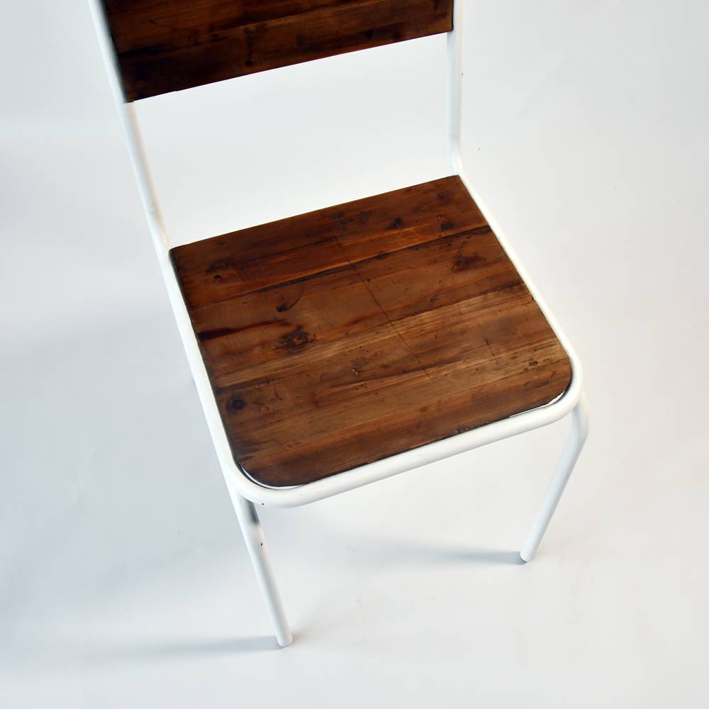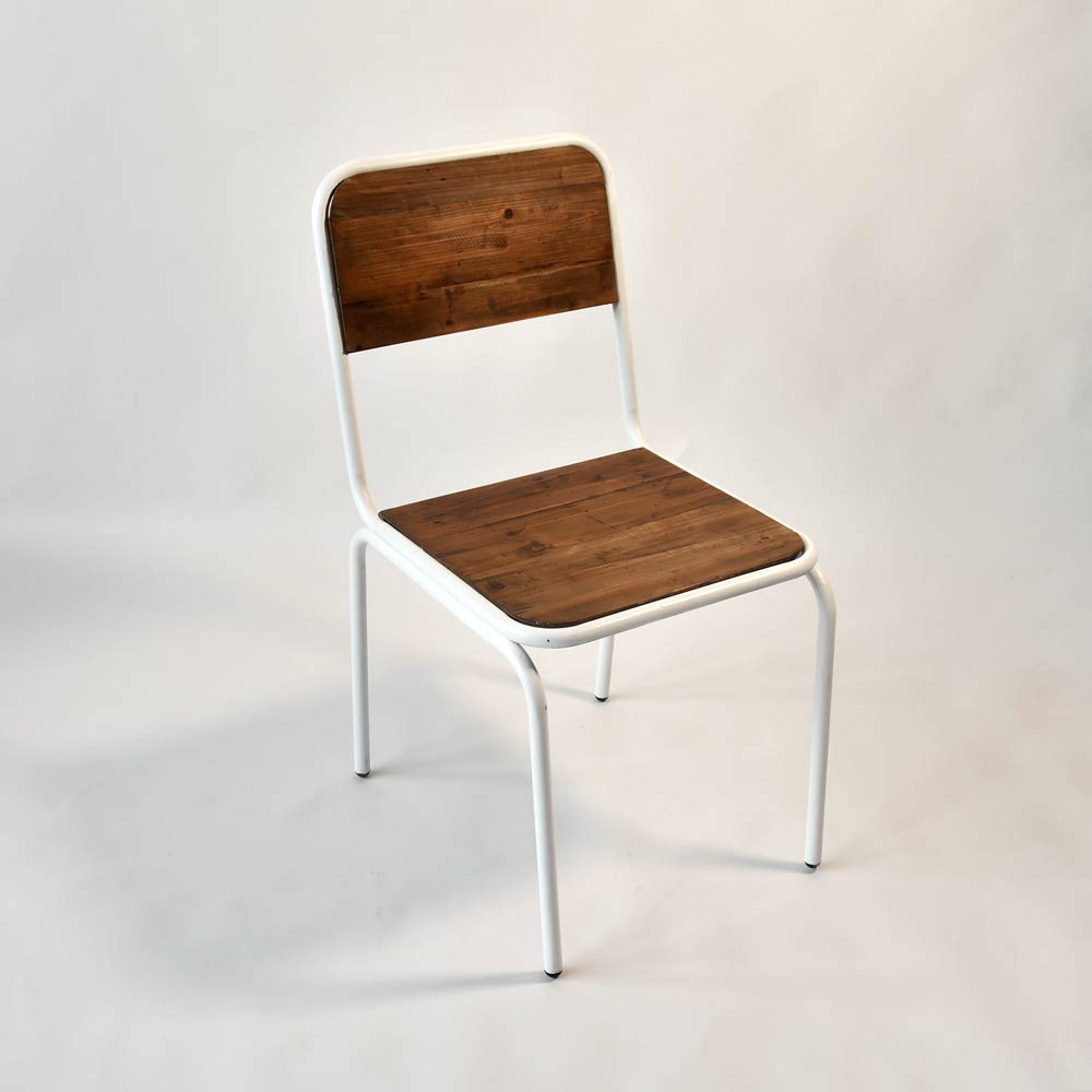 Sedia industrial con struttura in ferro di colore bianco, ottima per essere abbinata con più stili di arredamento.