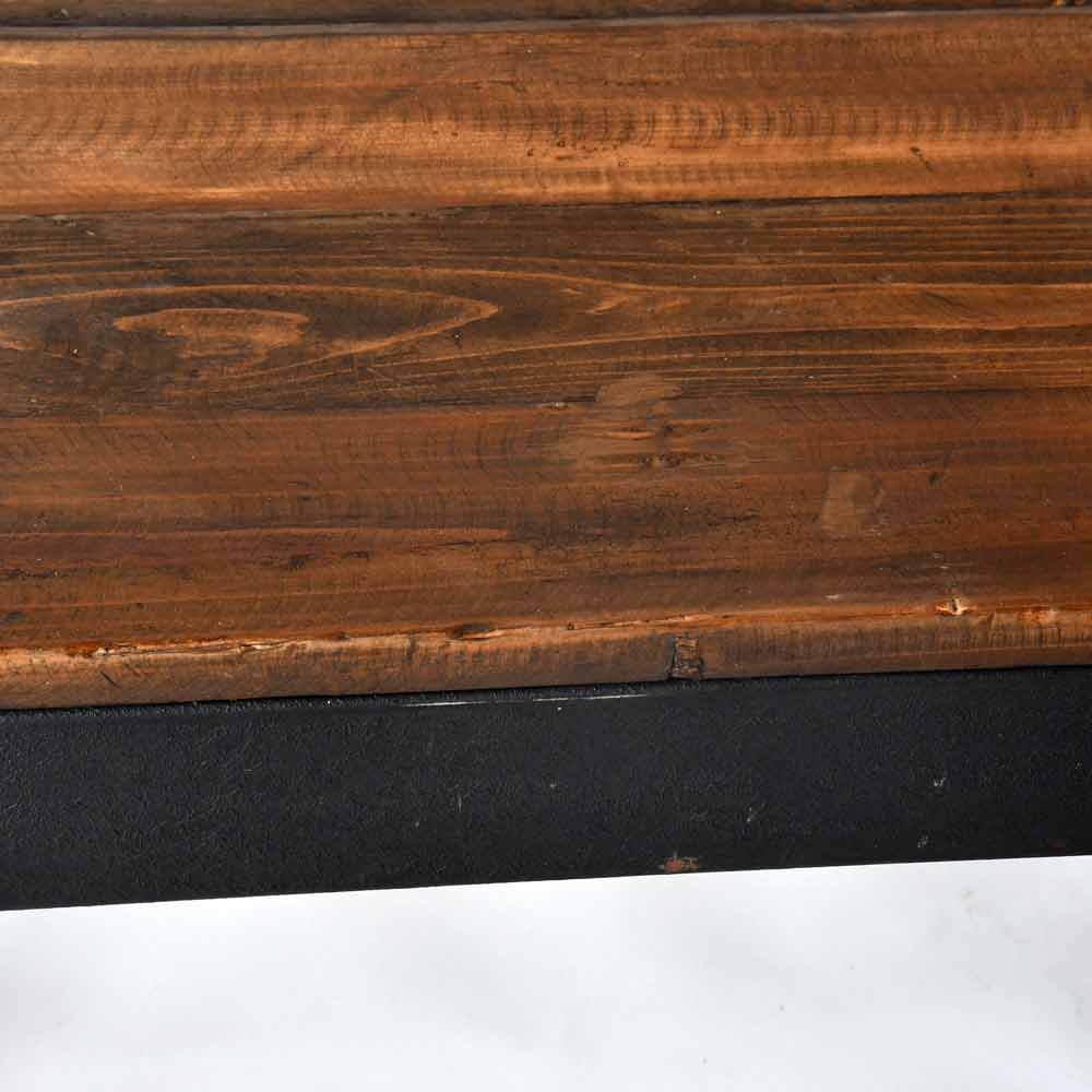 Le sue caratteristiche si fondano sul legno e sul ferro di cui è composto in un binomio stupendo. Il legno è di ottimo spessore, con assi di 2,5 cm, decisamente d’impatto per il suo piano naturale leggermente scuro con le belle venature e nodi in evidenza come richiede lo stile.