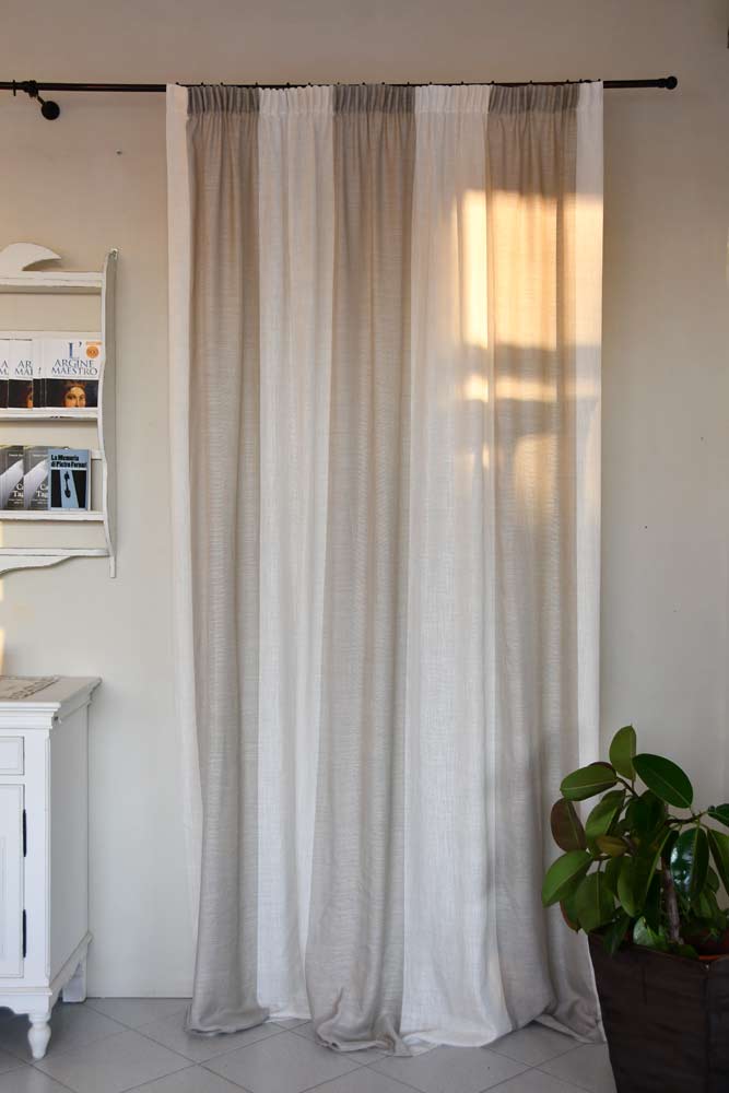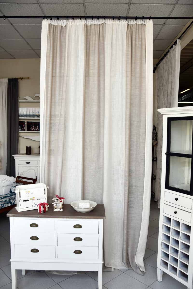 E’ confezionata con arricciatende e con piombino al fondo.