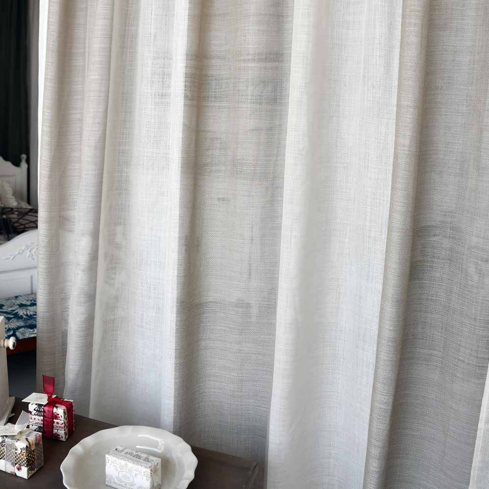 Questo tipo di trama del tessuto, molto raffinata, è anche molto comoda per il lavaggio. Se la tenda viene montata ancora umida dopo il lavaggio non necessita di stiratura. In caso la si volesse stirare è indispensabile non usare ferro a vapore. Non usare asciugatrice.