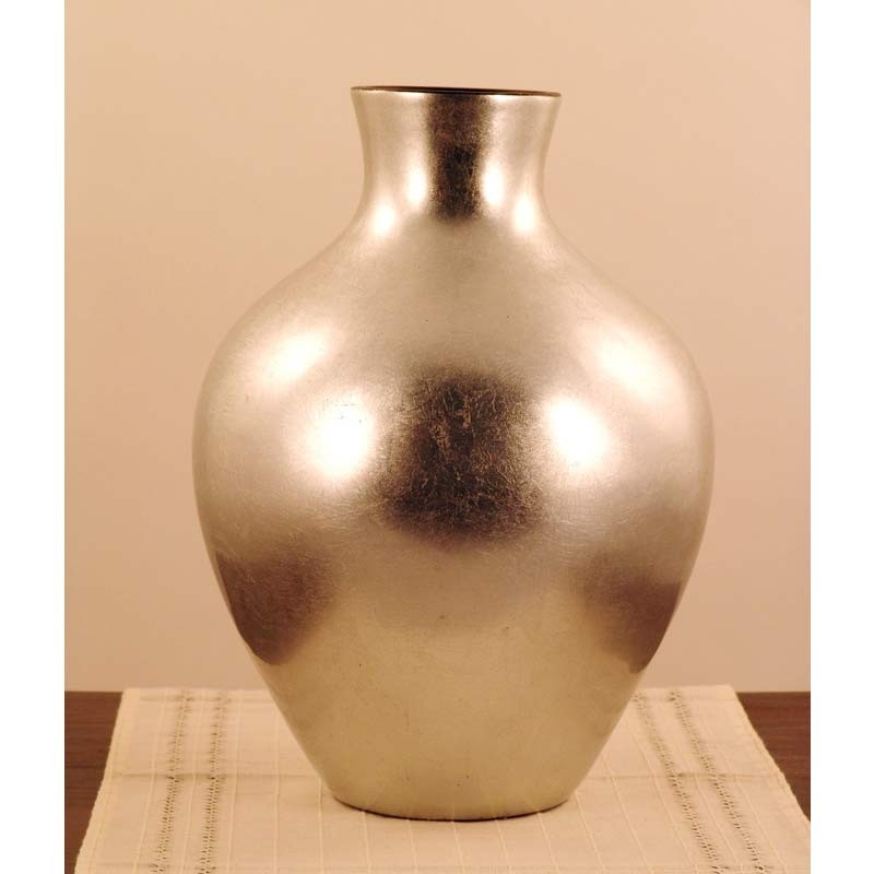 Vaso per arredamento argento finito a foglia argentata su tutta la superficie.