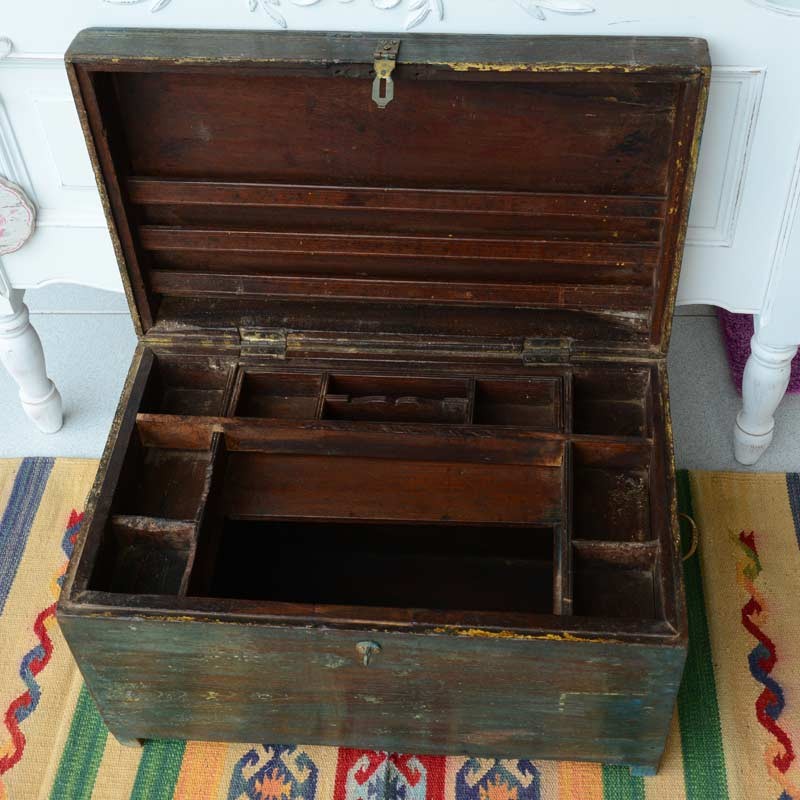 Una cassa in legno di vecchia fattura restaurata e pronta per arredare con personalità una casa country o ricca di oggetti antichi. La cassa è interamente in legno massello che conserva il colore originale dell’essenza appena sotto una leggerissima decapatura che offre un tono tra l’azzurro e il verde, molto caldo e caratteristico.